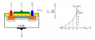 N沟道耗尽型MOSFET的结构和转移特性曲线