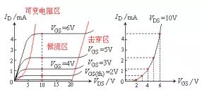VGS<VGS(th),沟道未形成,ID=0。在VGS(th)附近很小的区域叫亚阈区(Subthreshold Region)在这个区域内,ID与VGS的关系为指数关系。