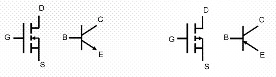 1).场效应管的源极S、栅极G、漏极D分别对应于三极管的发射极e、基极b、集电极c,它们的作用相似,图1-6-A所示是N沟道MOS管和NPN型晶体三极管引脚,图1-6-B所示是P沟道MOS管和PNP型晶体三极管引脚对应图。