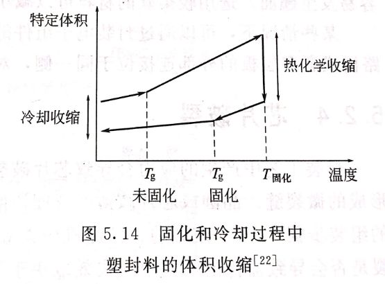 导致翘曲的原因主要包括CTE失配和固化/压缩收缩。后者一开始并没有受到太多的关注,深入研究发现,模塑料的化学收缩在IC器件的翘曲中也扮演着重要角色,尤其是在芯片上下两侧厚度不同的封装器件上。在固化和后固化的过程中,塑封料在高固化温度下将发生化学收缩,被称为“热化学收缩”。通过提高玻璃化转变温度和降低Tg附近的热膨胀系数变化,可以减小固化过程中发生的化学收缩。