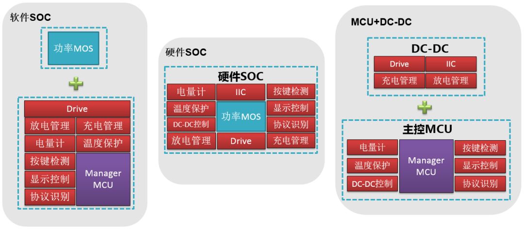 要设计一款好的PD移动电源,选择合适的架构非常重要。目前市面上主要有硬件SOC、软件SOC、MCU+DC-DC三种架构: