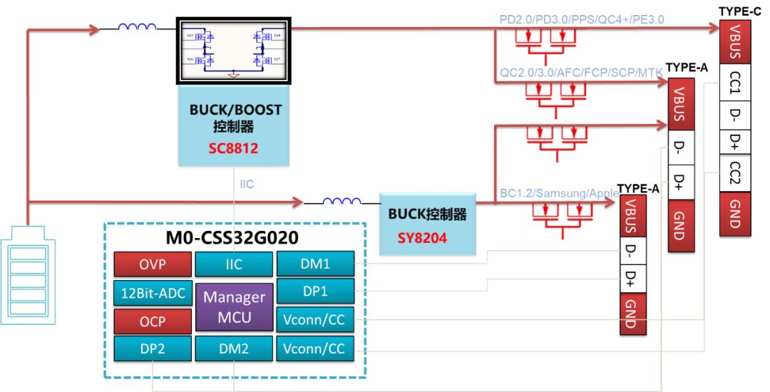 从PD协议的发展过程以及完整性考虑,最适合PD移动电源设计的架构是MCU+DC-DC架构。在PD协议完全统一快充之前,支持固件升级、配合图形化开发工具,是开发PD移动电源的最佳选择。